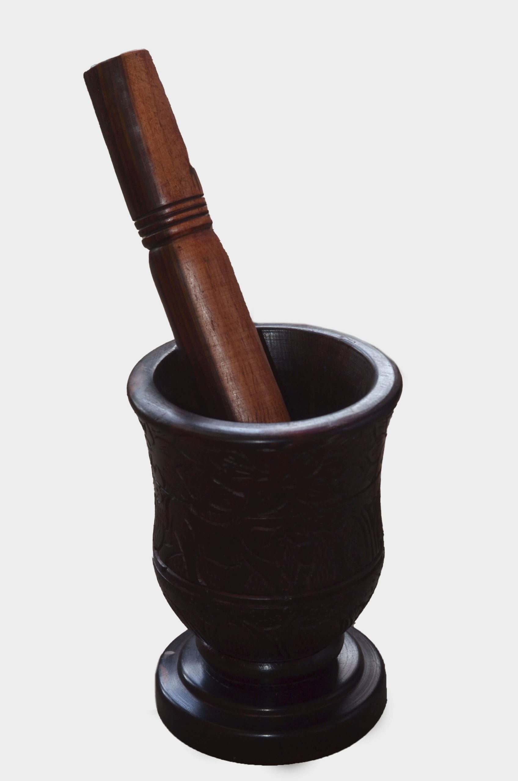 Hand Carved Wooden Mortar and Pestle Set – Traditional Wooden Spice Grinder