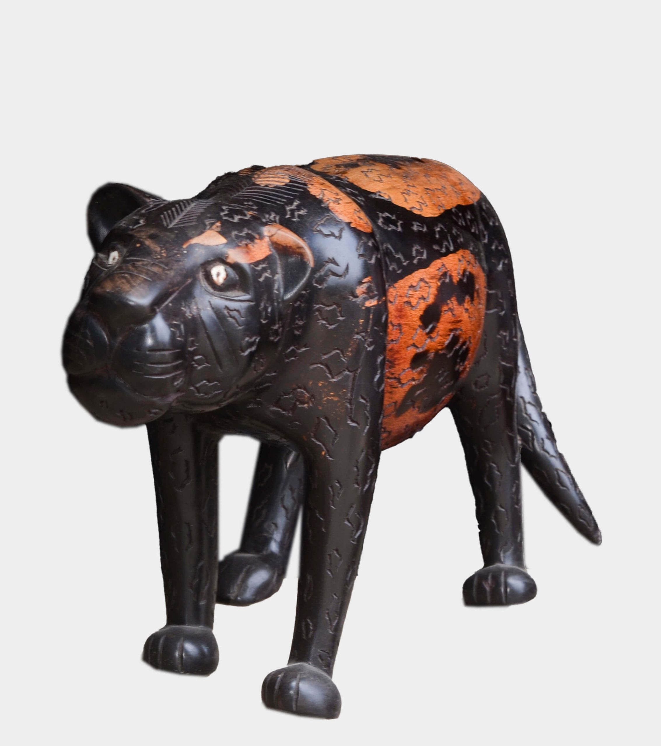 Handcrafted solid wood tiger sculpture