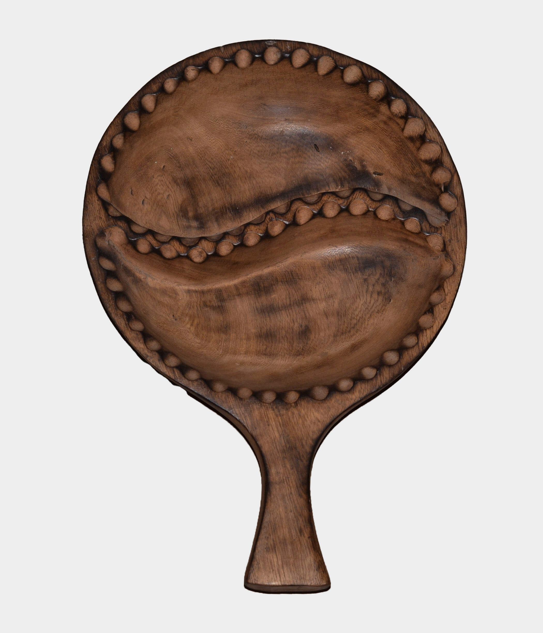 A unique handcrafted wooden tribal wall mask featuring bold carved lips and decorative bead-like details. Perfect as a statement wall décor piece inspired by traditional African artistry.