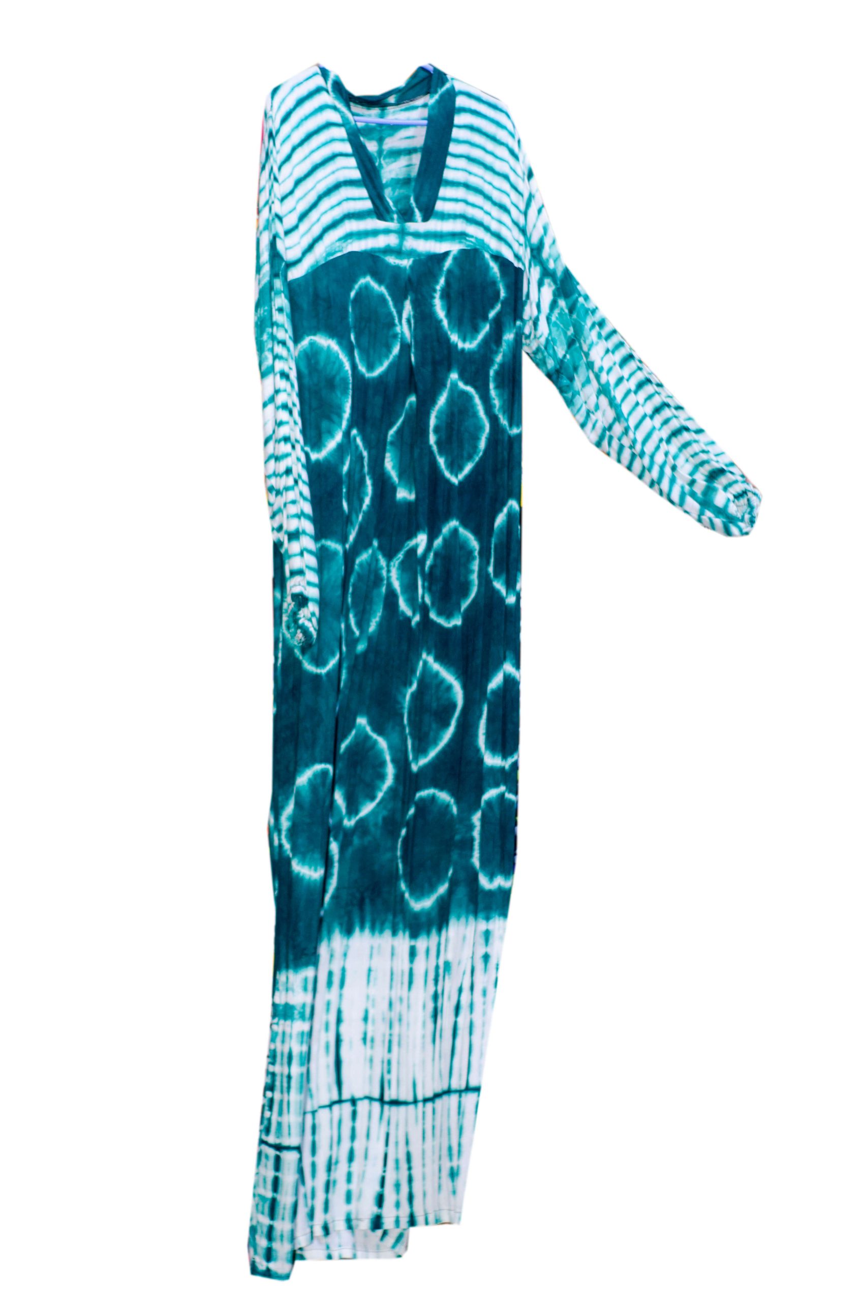 Teal Tie-Dye Maxi Kaftan Dress – Handmade Boho Long Sleeve Tunic